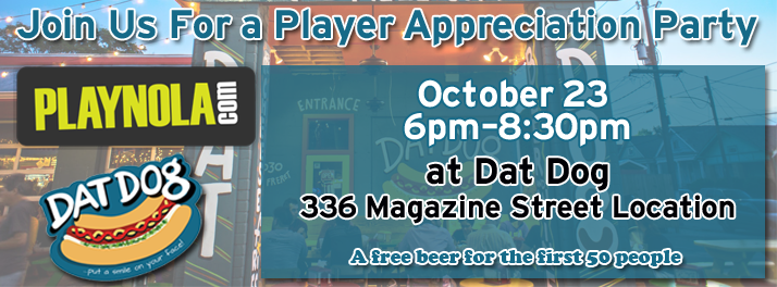 The first 50 playNOLA players will get free beer and every player (wearing a playNOLA shirt) will get $1 off dogs. Can’t say fairer than that!!