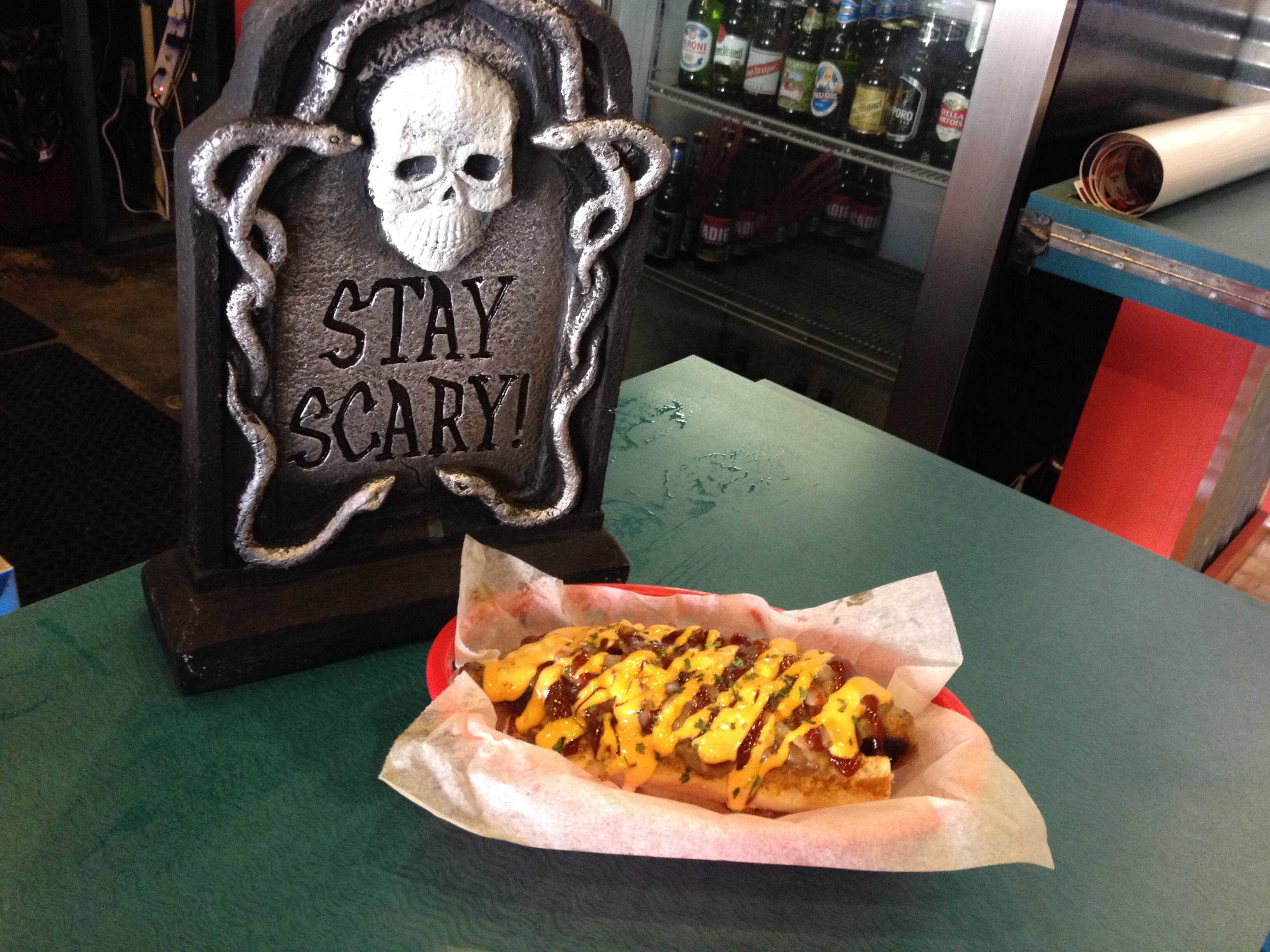 Our dog special of the week is the bacon werewolf. In case for some mad reason you’ve not already tried it, this dog is a grilled slovenian sausage topped with sauerkraut, crispy bacon bits, diced tomatoes, grilled onions, relish and creole mustard. As always, the special of the week is $6.50.